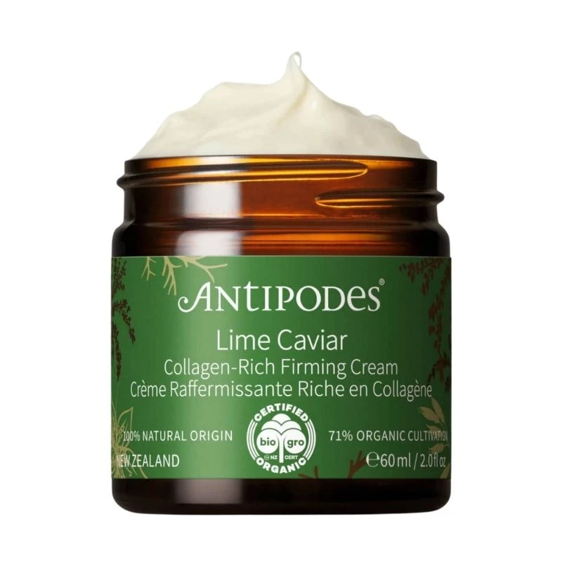 La Crème Raffermissante Lime Caviar de la marque Antipodes est une crème de soin anti-âge riche en collagène. Cette crème convient à tous les types de peaux, surtout les peaux sèches et matures.
