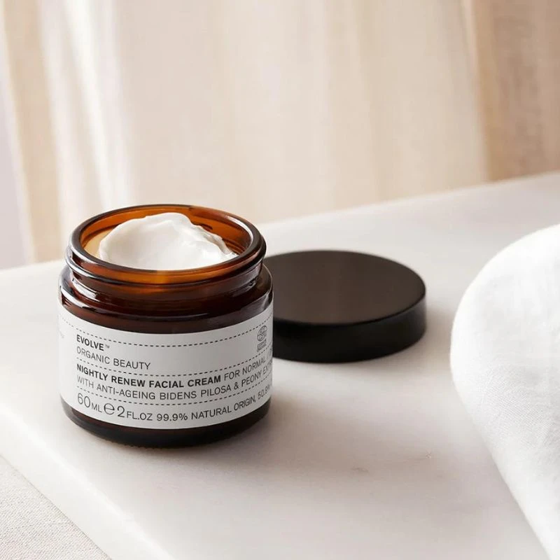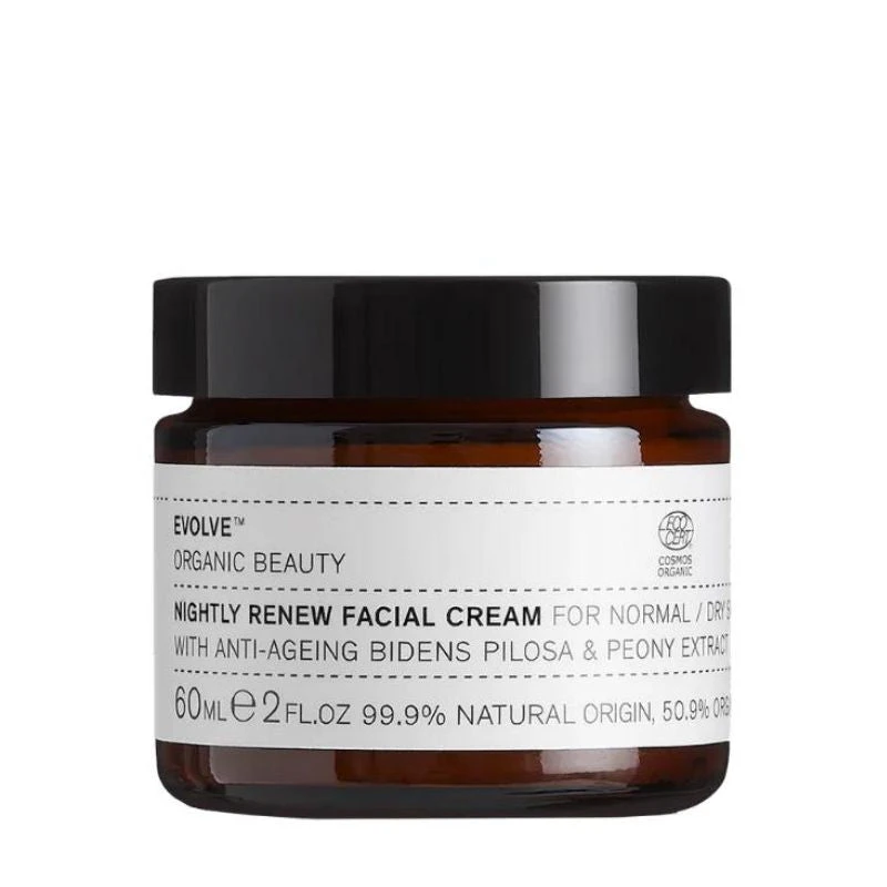 La Crème Visage Nightly Renew de la célèbre marque Evolve Beauty est un soin anti-âge de nuit apaisant, hydratant et relaxant, pour les peaux normales à sèches et matures.