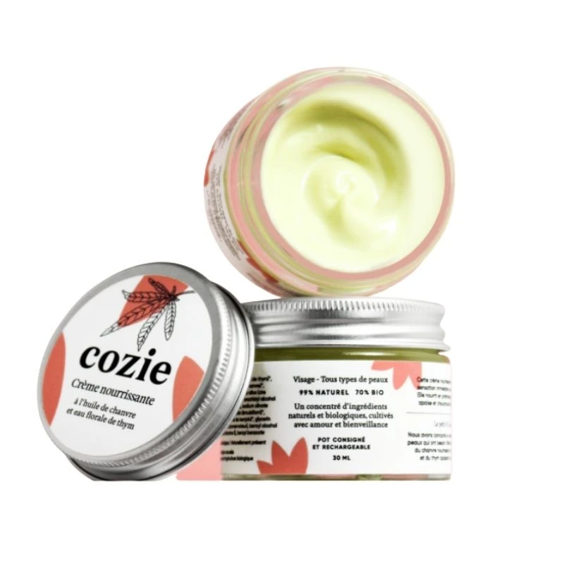 Si vous avez une peau sèche, abimée ou déshydratée, c’est la Crème Visage Nourrissante Cozie qu’il vous faut ! Elle nourrit et apaise l’épiderme et procure une sensation de confort instantanée.