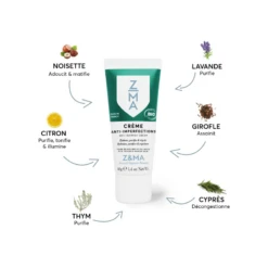 Les huiles essentielles de romarin, de cyprès, de citron et d’encens d’oliban viennent tonifier puis rafraichir la peau et resserrer les pores.