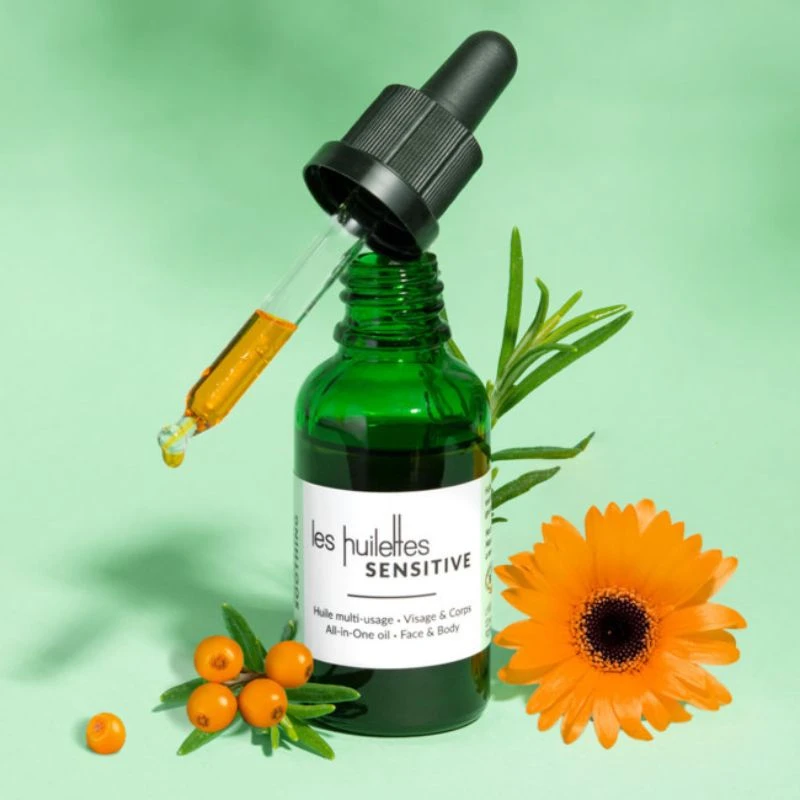 L’Huile Sensitive de la marque Les Huilettes est un soin multi-usages, visage et corps, qui apaise et illumine le teint. Il convient aux peaux sensibles et réactives, sujettes aux rougeurs et aux peaux abimées.
