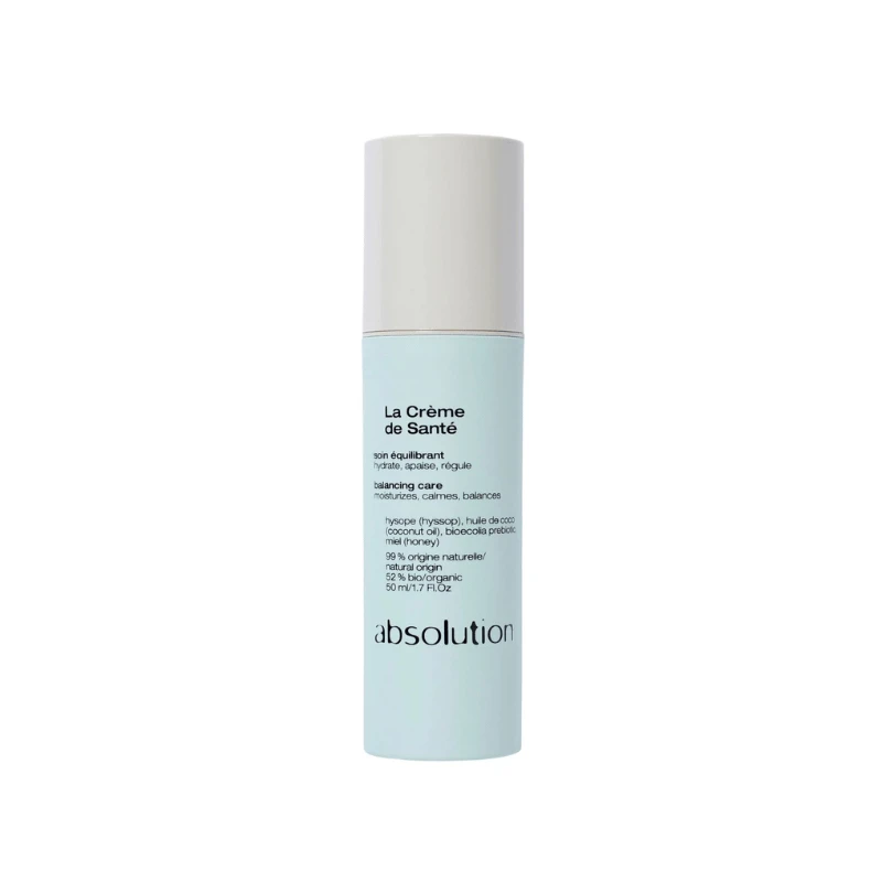La Crème de Santé bio d’Absolution combine des actifs ciblés pour réguler et revitaliser l’épiderme de tous les types de peaux.