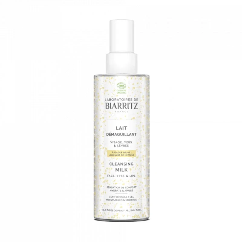 Le Lait Démaquillant de la marque Les Laboratoires de Biarritz est un soin visage, lèvres et yeux qui démaquille et nettoie en douceur, même le maquillage waterproof. Il convient à toutes les peaux.