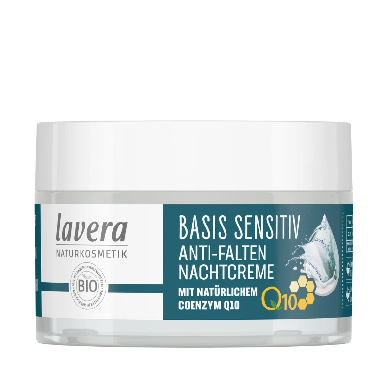 La Crème de nuit anti-rides Q10 basis sensitiv de Lavera est la crème idéale pour les personnes cherchant une formule soin douce pour une peau plus lisse !