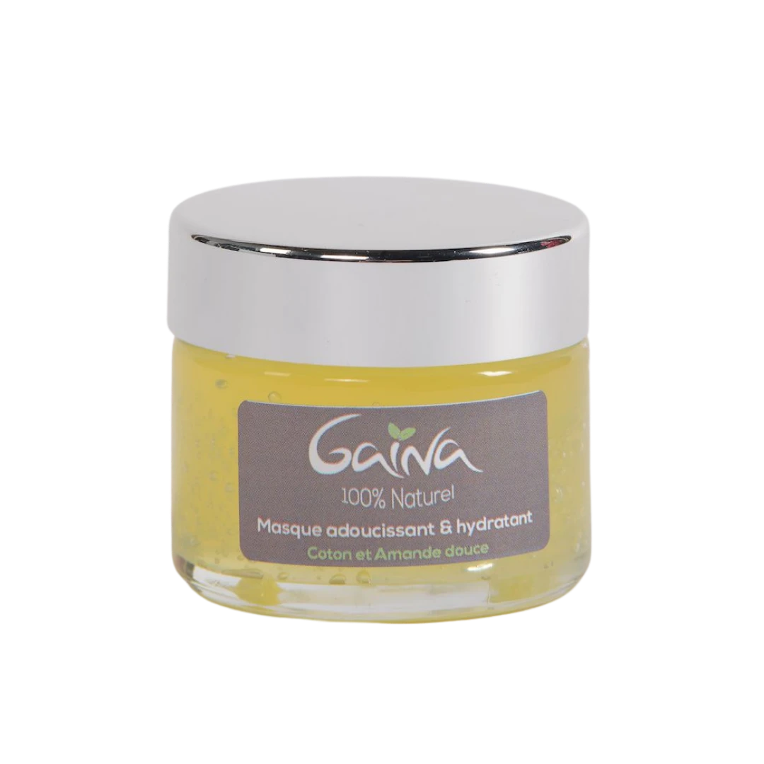 Envie d’une peau de bébé ? Le masque adoucissant et hydratant de Gaïna est fait pour vous ! Destiné à tous les types de peaux et d’une douceur incomparable, il laisse la peau hydratée, nourrie et protégée des agressions extérieures. Formulé à base d’huile d’amande douce nourrissante et d’huile de coton antioxydante, ce masque adoucit et régénère la peau tout en la tonifiant.