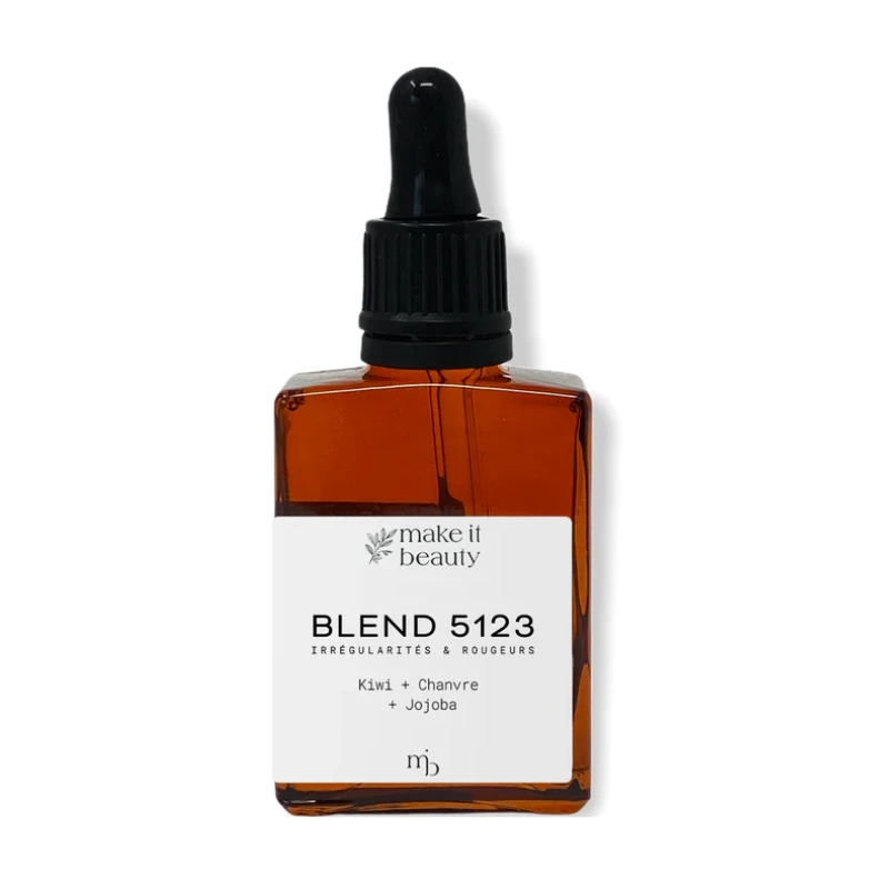 Make it Beauty a mis au point le Sérum BLEND 5123 dédié à la lutte contre les rougeurs et les irrégularités. Ce sérum contient un assemblage d’un maximum de quatre huiles végétales vierges, biologiques et précieuses adaptées aux besoins particuliers de votre peau.